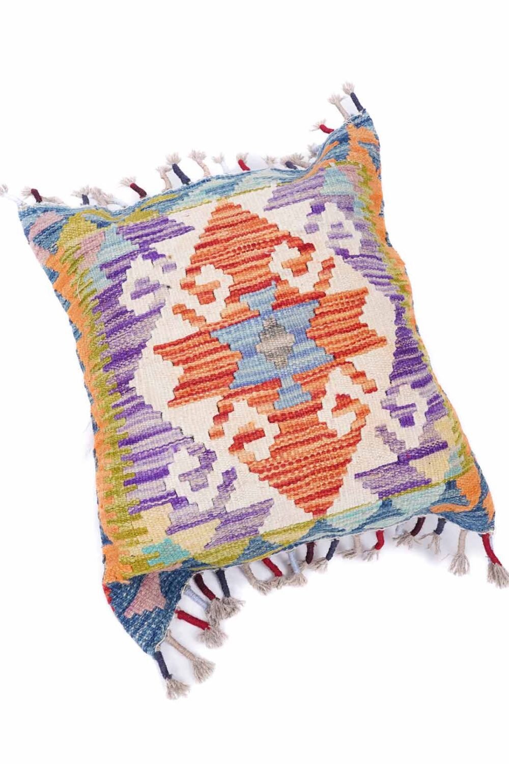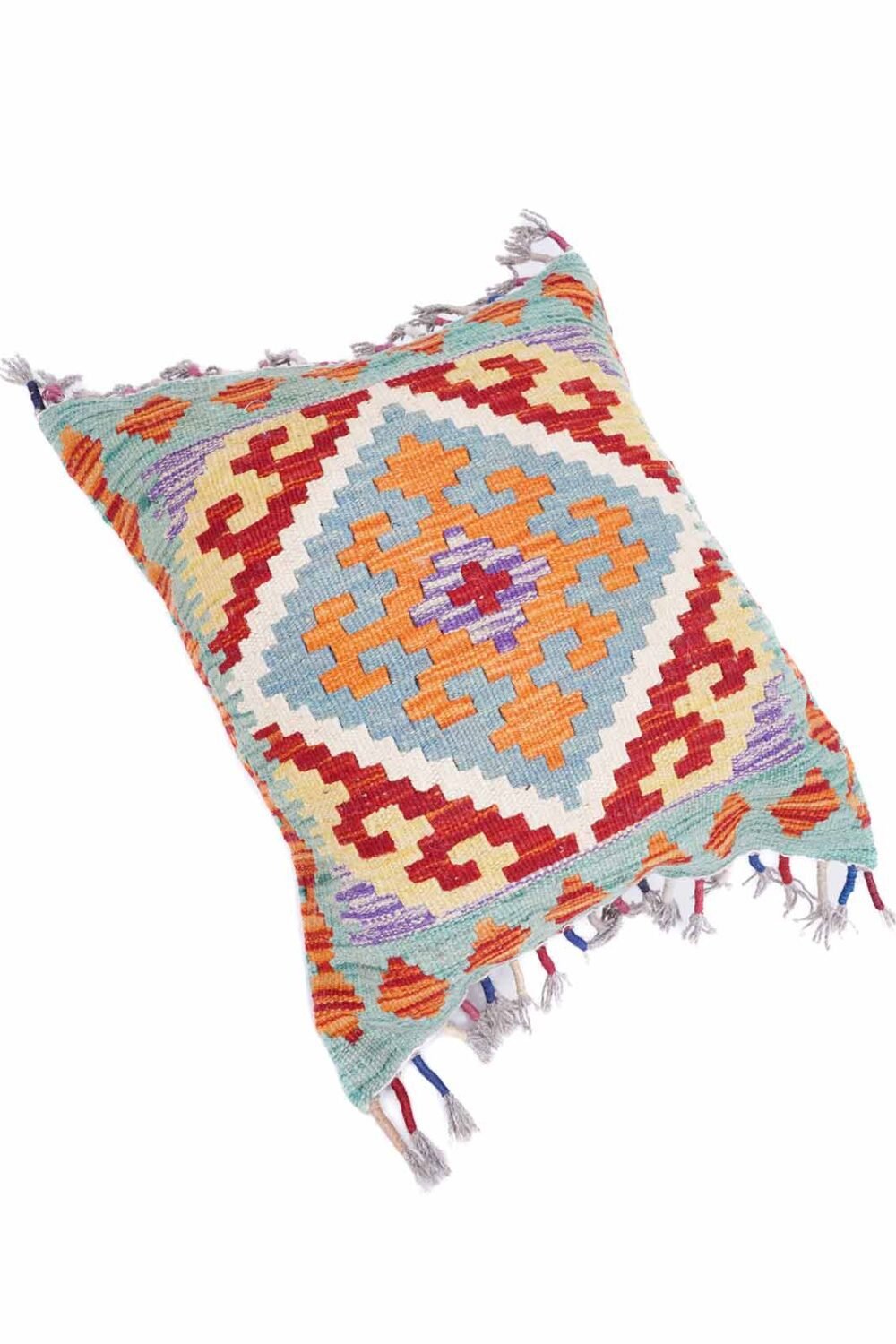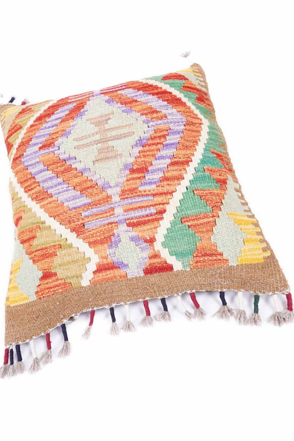 Handwoven Wool Kilim Pillow Cover – Multicolor Geometric Pattern