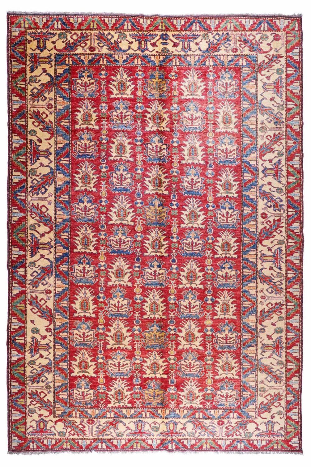 Feature Details Product Name Hand-knotted Bilcik Afghan Rug Dimensions 7.6ft (L) x 5.6ft (W) Design Style Oriental (Bilcik) Color Scheme Red & Blue Material Wool (Pile), Cotton (Base) Craftsmanship Hand-knotted Origin Afghanistan SKU D800659