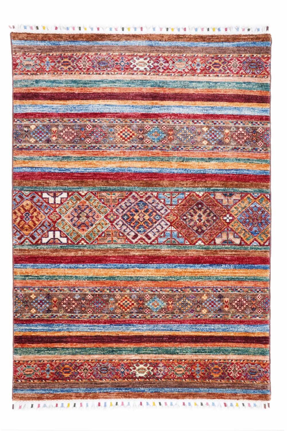 Hand-Knotted Stripted Rainbow Area Rug Vibrant Colors 4.8x3.2 ft