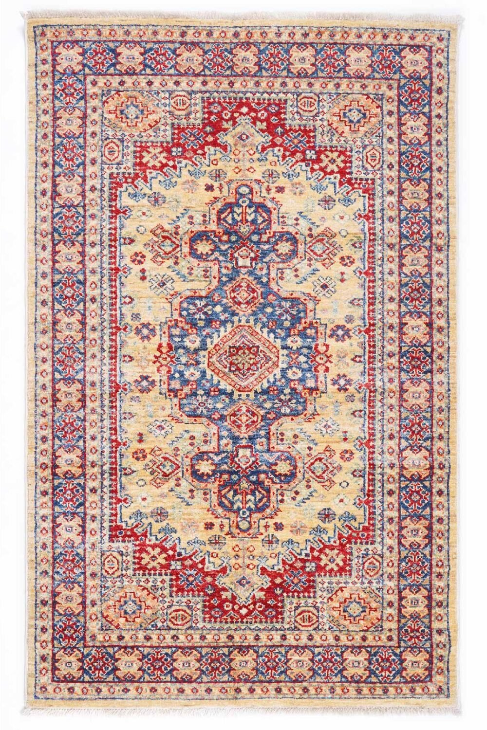 Hand-Knotted Traditional 5×3 Area Rug with Yellow and Red Oriental Pattern – Luxurious Home Decor