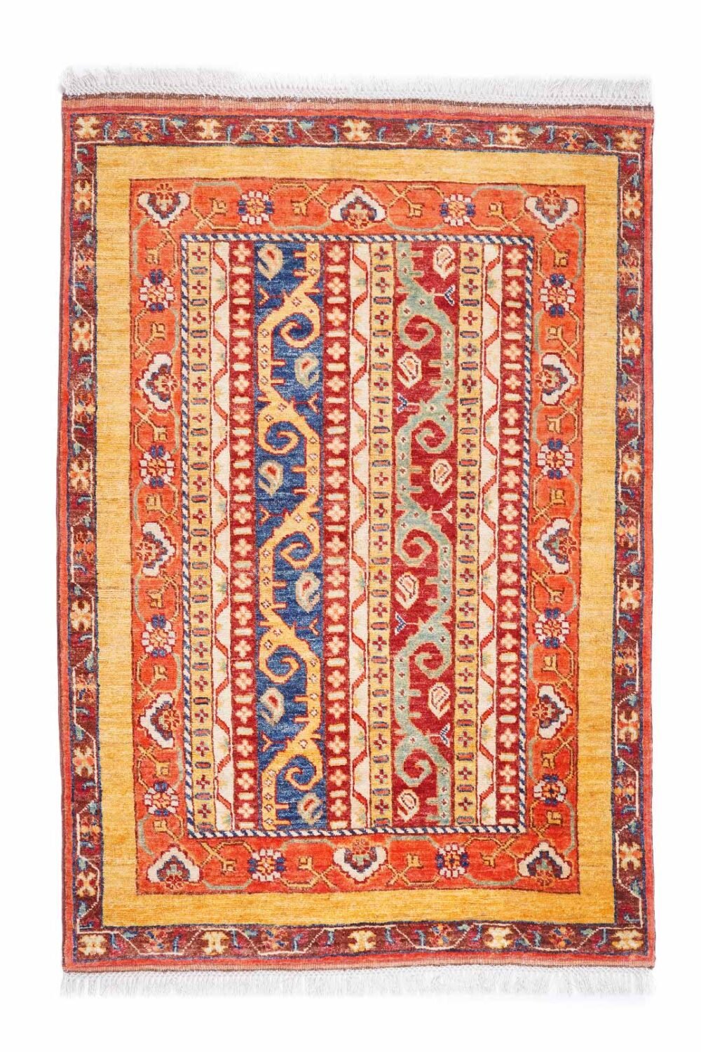 Hand-Knotted Traditional Yellow and Orange Striped Rugs 5×3.4 ft