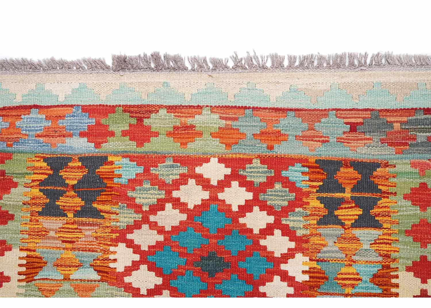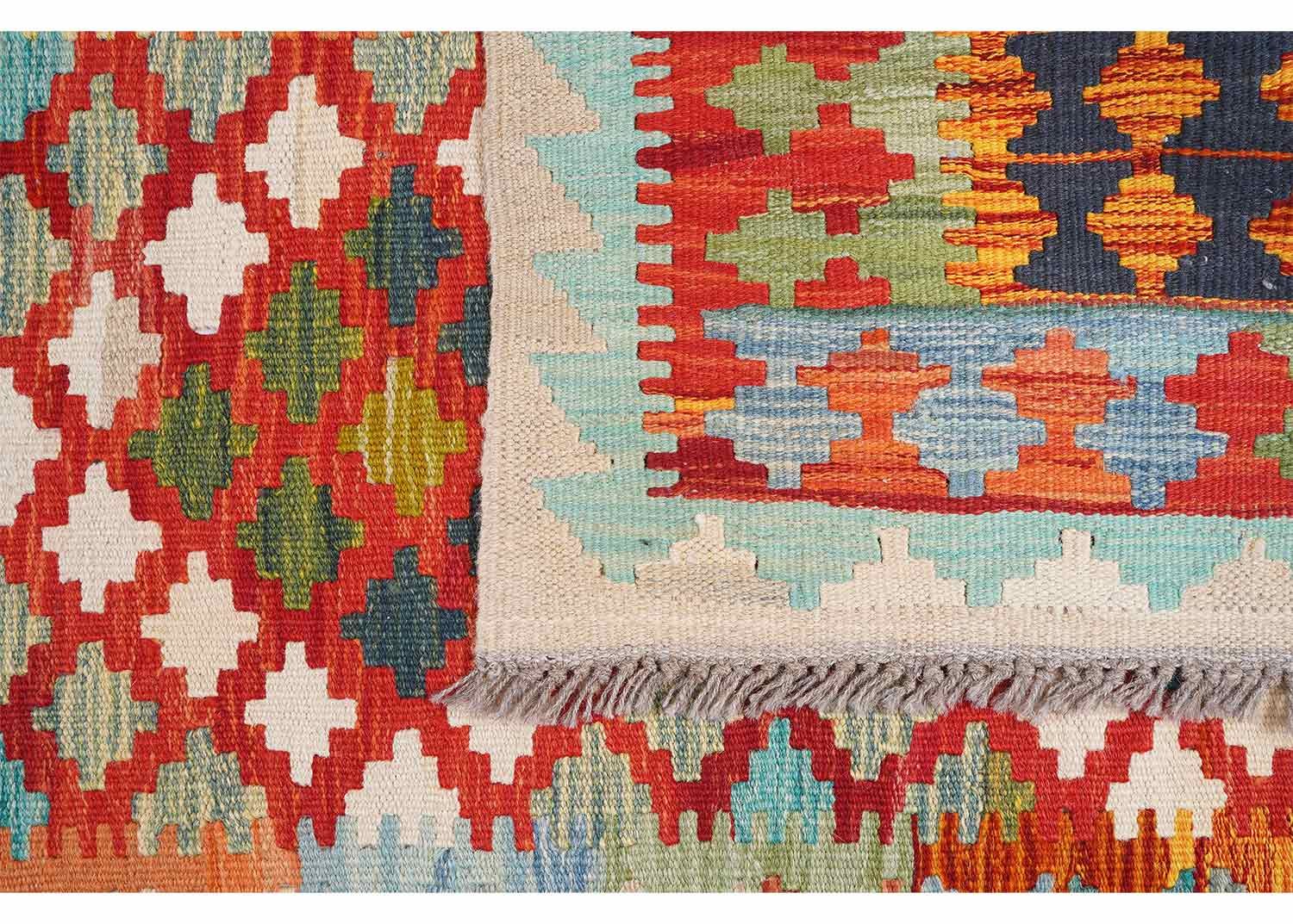Each rug is meticulously handwoven by skilled artisans at rugs 1. The Kilim design adds a touch of rustic elegance, enhancing the visual appeal of your living space.
