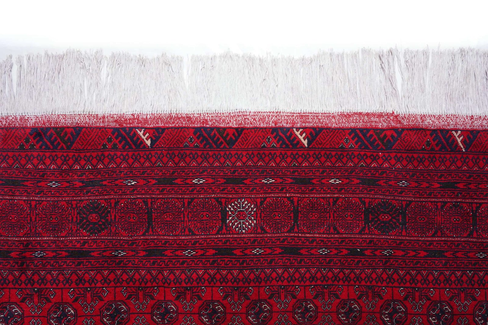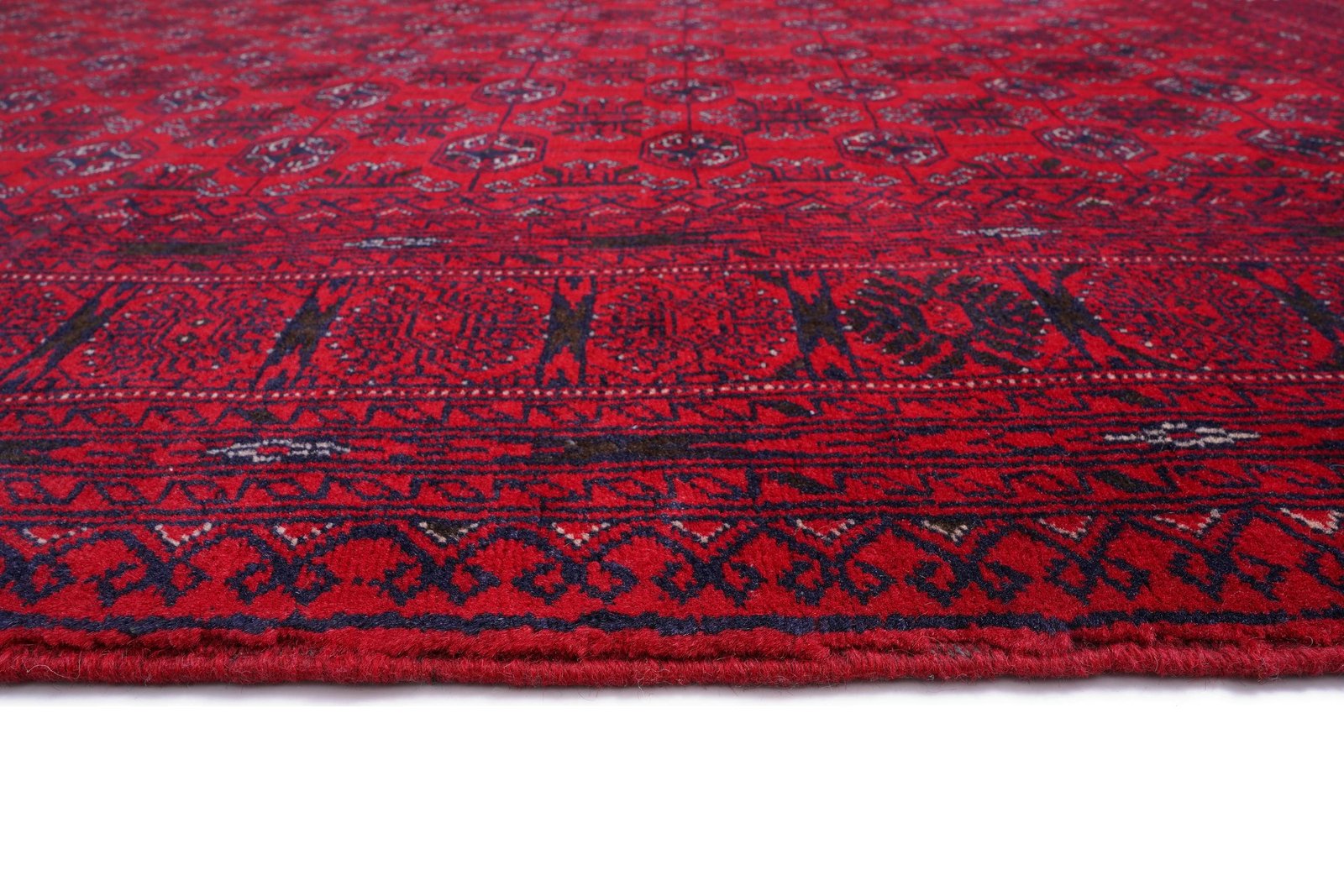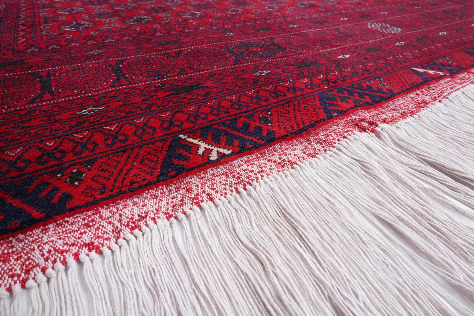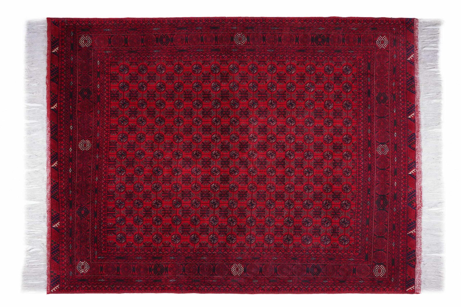 Product Name Hand-knotted Afghan Bukhara Rug – Red & Blue Oriental Design