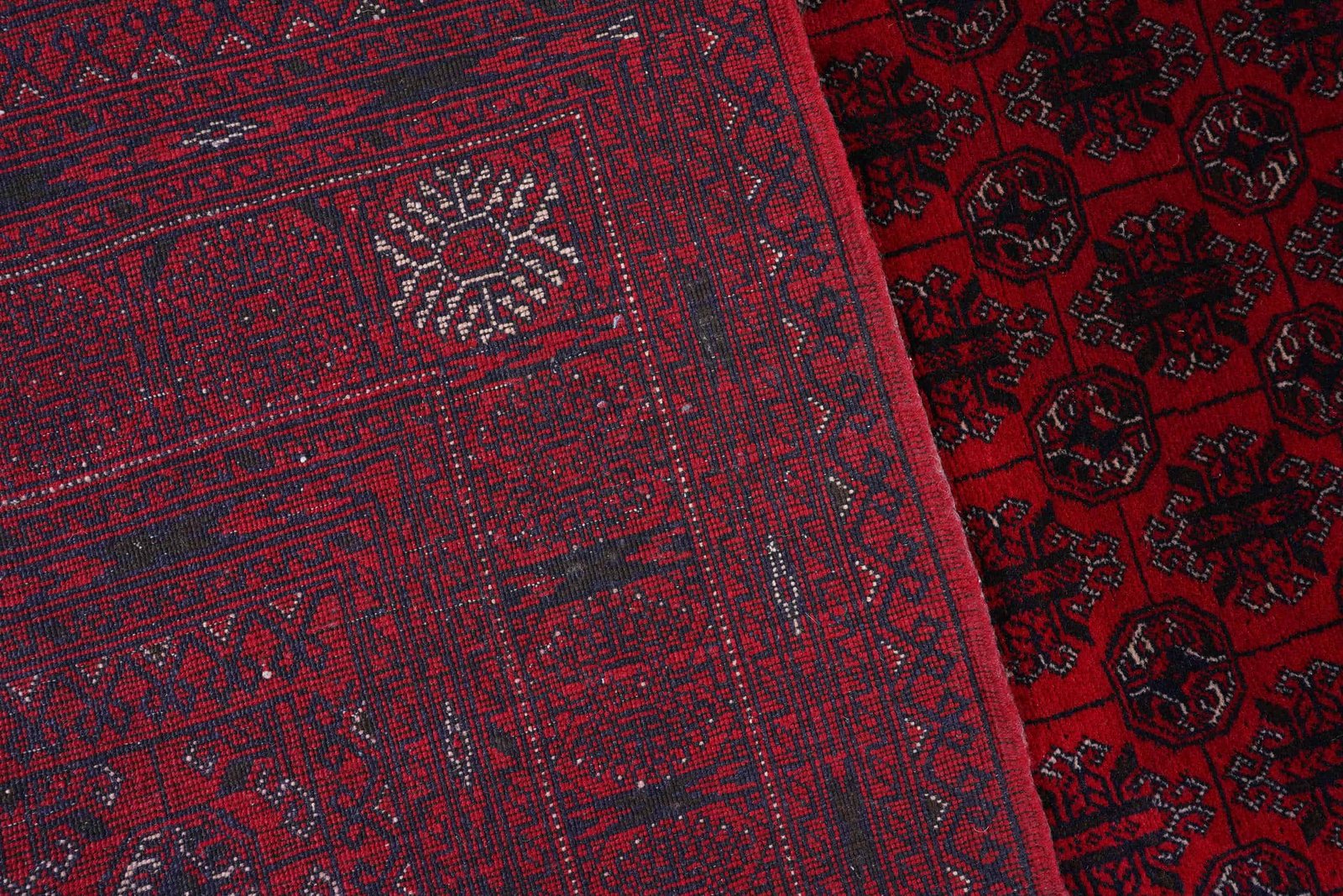 Be the first to review “Hand-Knotted Afghan Bukhara Rug – Red & Blue Oriental Wool Area Rug | Rugs1”