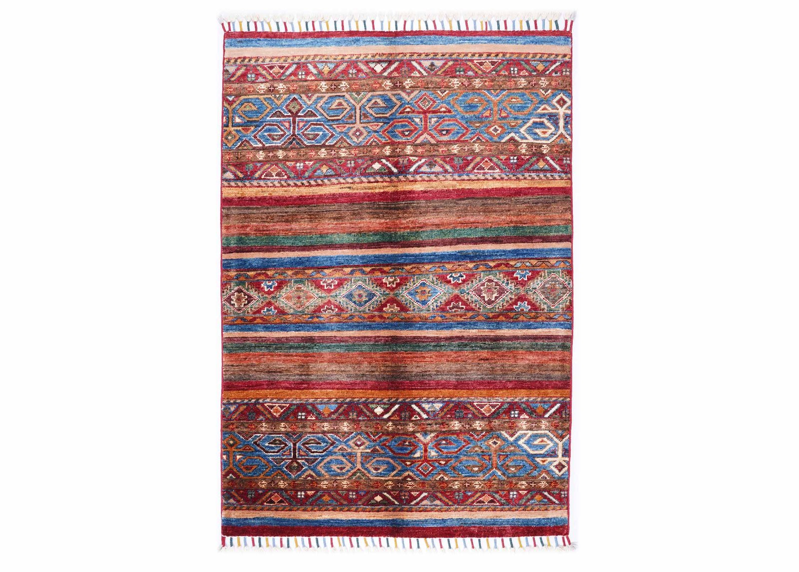 The Horgin Traditional Striped Rug Multicolor 3.8×2.6 ft Hand-Knotted by Rugs 1 is a perfect blend of elegance and durability. This rug, crafted from pure wool, features a multicolor palette that adds vibrancy to any room. Its traditional striped design fits well with both classic and modern decor, making it versatile for various spaces. Additionally, the hand-knotted craftsmanship ensures long-lasting quality and a unique aesthetic. This 3.8×2.6 ft rug brings a touch of authentic Pakistani artistry to your home, providing warmth and comfort.