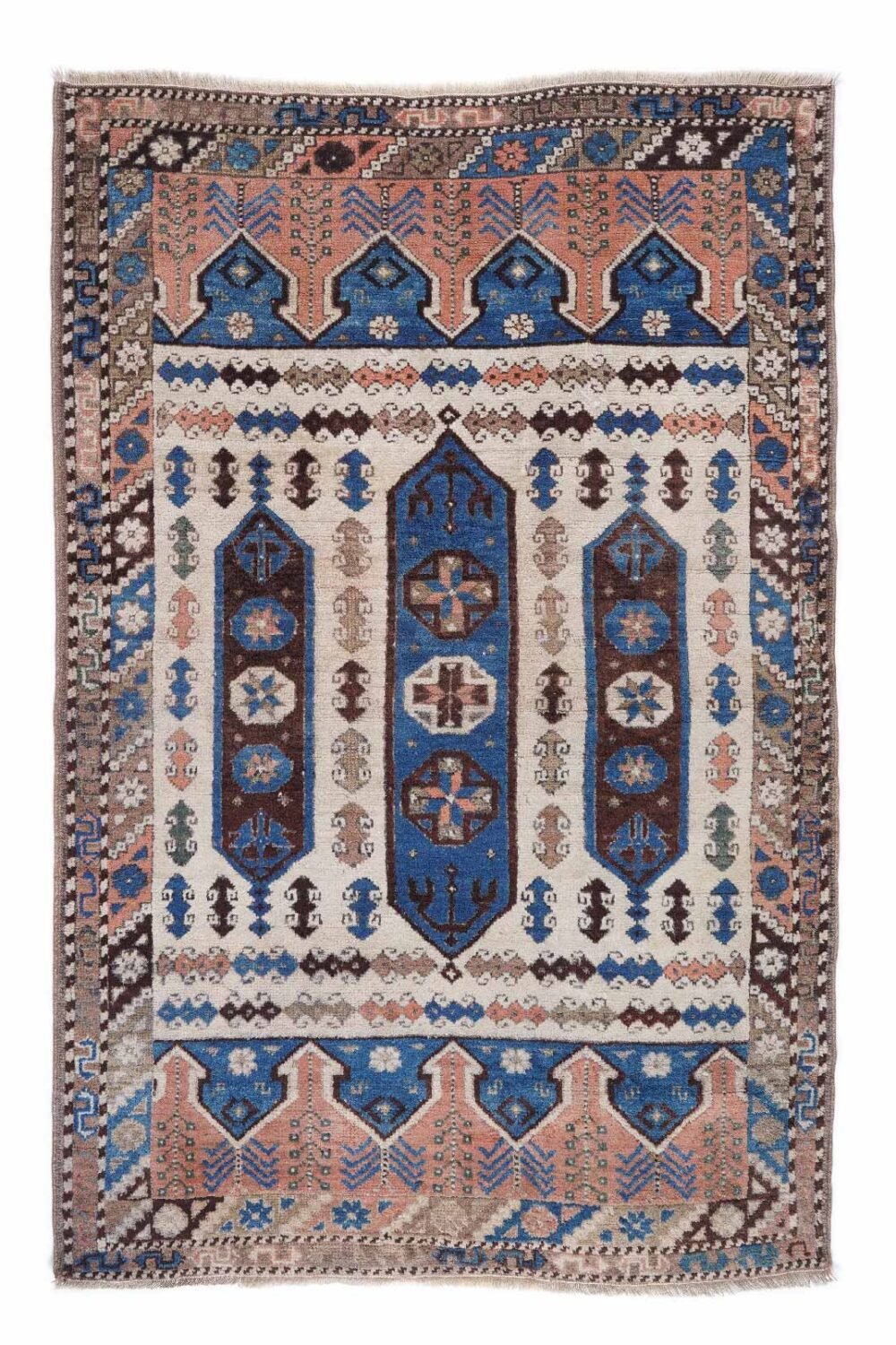 Traditional Kars 4×4 Wool Rug Semi-Old Blue & Orange